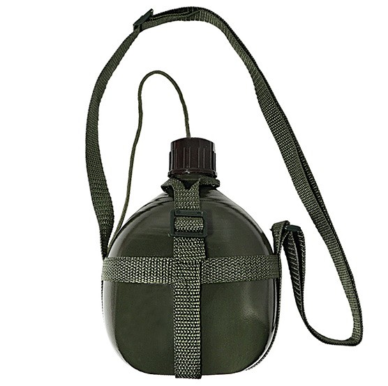 Фляга алюминиевая крашеная с ремнем, объём 1 литр.