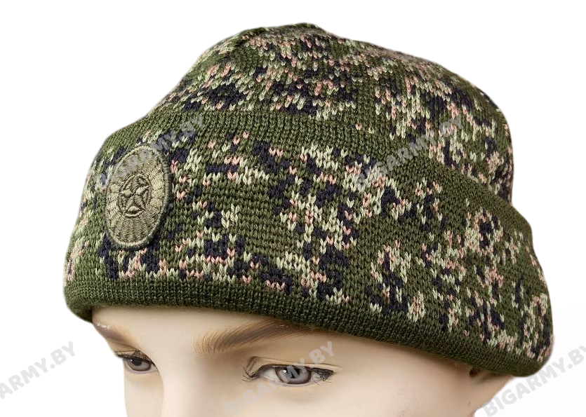 Шапка вязаная полушерстяная армейская в расцветке цифра с кокардой и флисовой подкладкой.