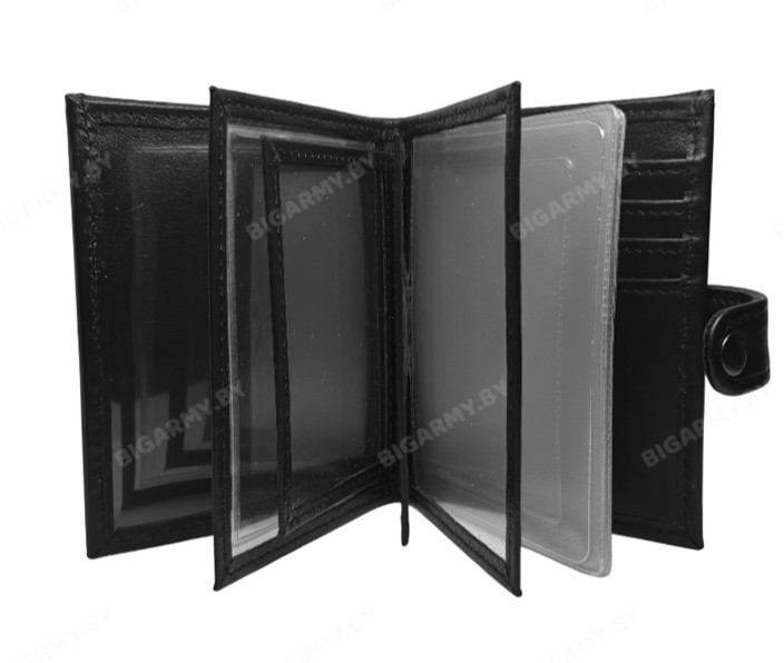 В портмоне имеется отделение для хранения денег, а также большие и маленькие карманы для удобного размещения различных документов в виде карточек: пропускных, платежных, проездных, водительских, удостоверяющих личность ID-карт/паспортов и иных документов. Также имеется съемный модуль под страховку.