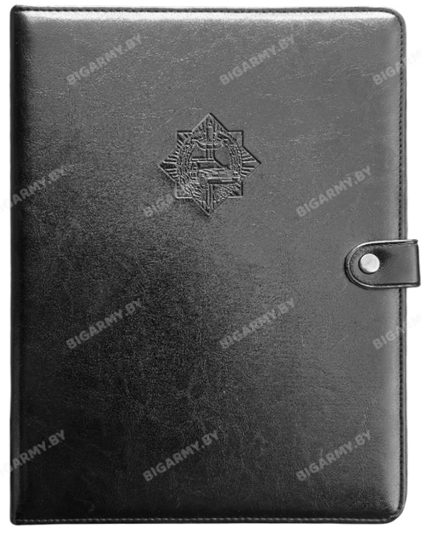 Папка для документов с тисненой эмблемой Государственной авто инспекции Республики Беларусь прижимным механизмом на кнопке.