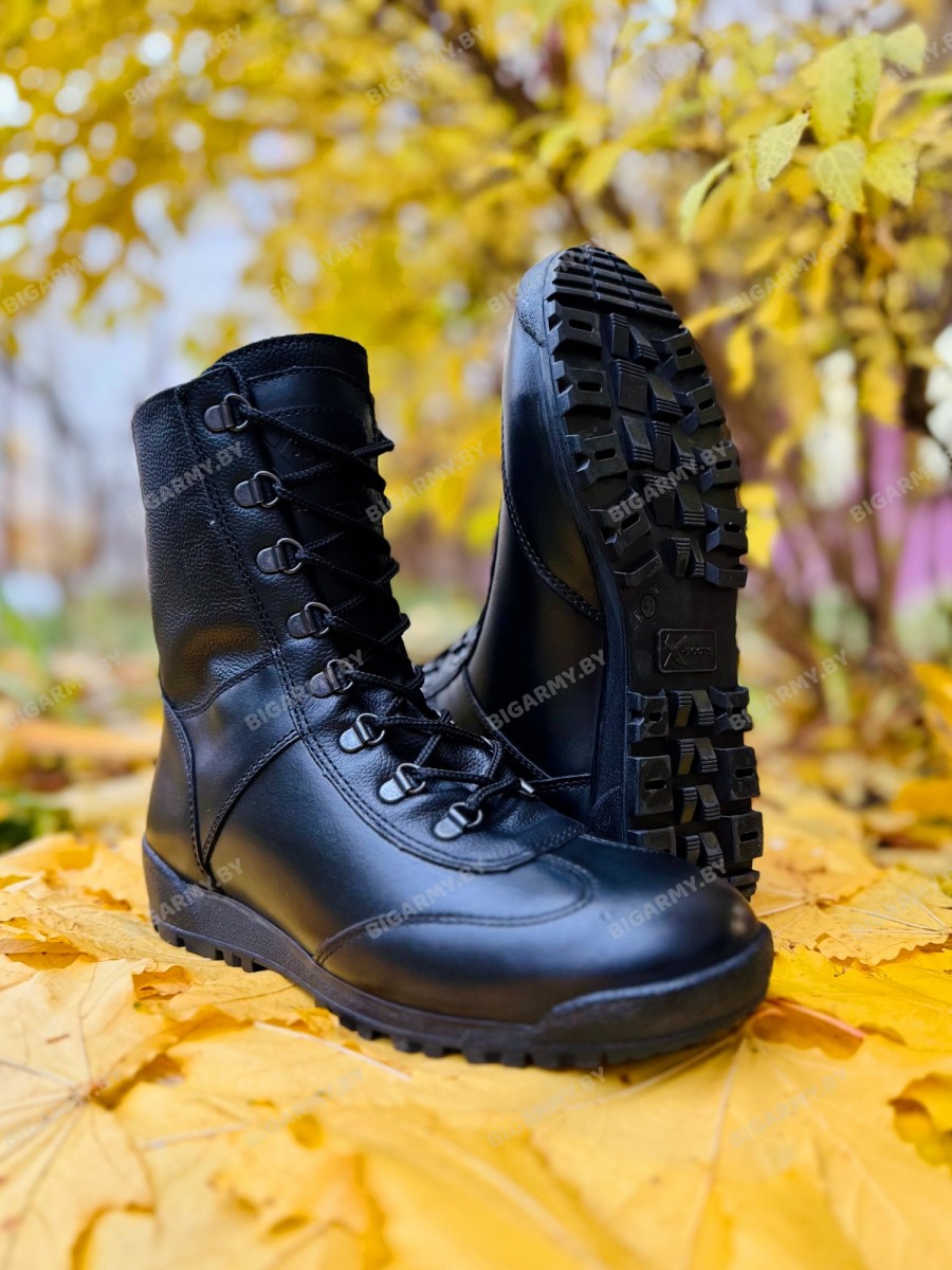- Верх комбинированный: гидрофобная кожа (1.2–1.4 мм), “DRYWALKSYSTEM” (R) (ЗАО «РУССКАЯ КОЖА») + на голенище эластичная натуральная кожа.