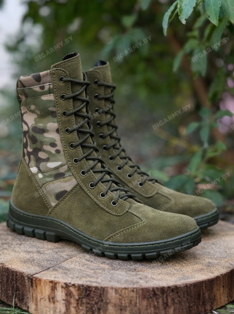 - Верх: Комбинированный: натуральная кожа “Велюр” + нейлоновая ткань MultiCam 1000D.