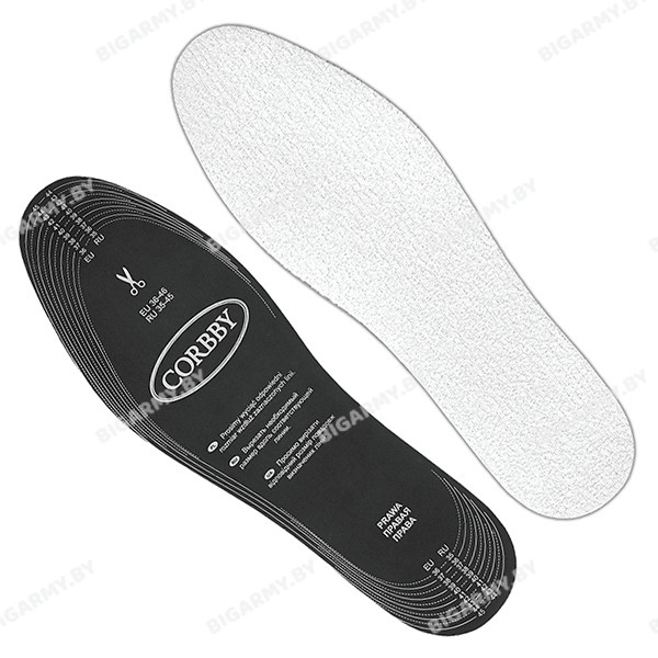 Стельки Corbby безразмерные демисезонные с активированным углем. Верхний слой - х/б махровая ткань