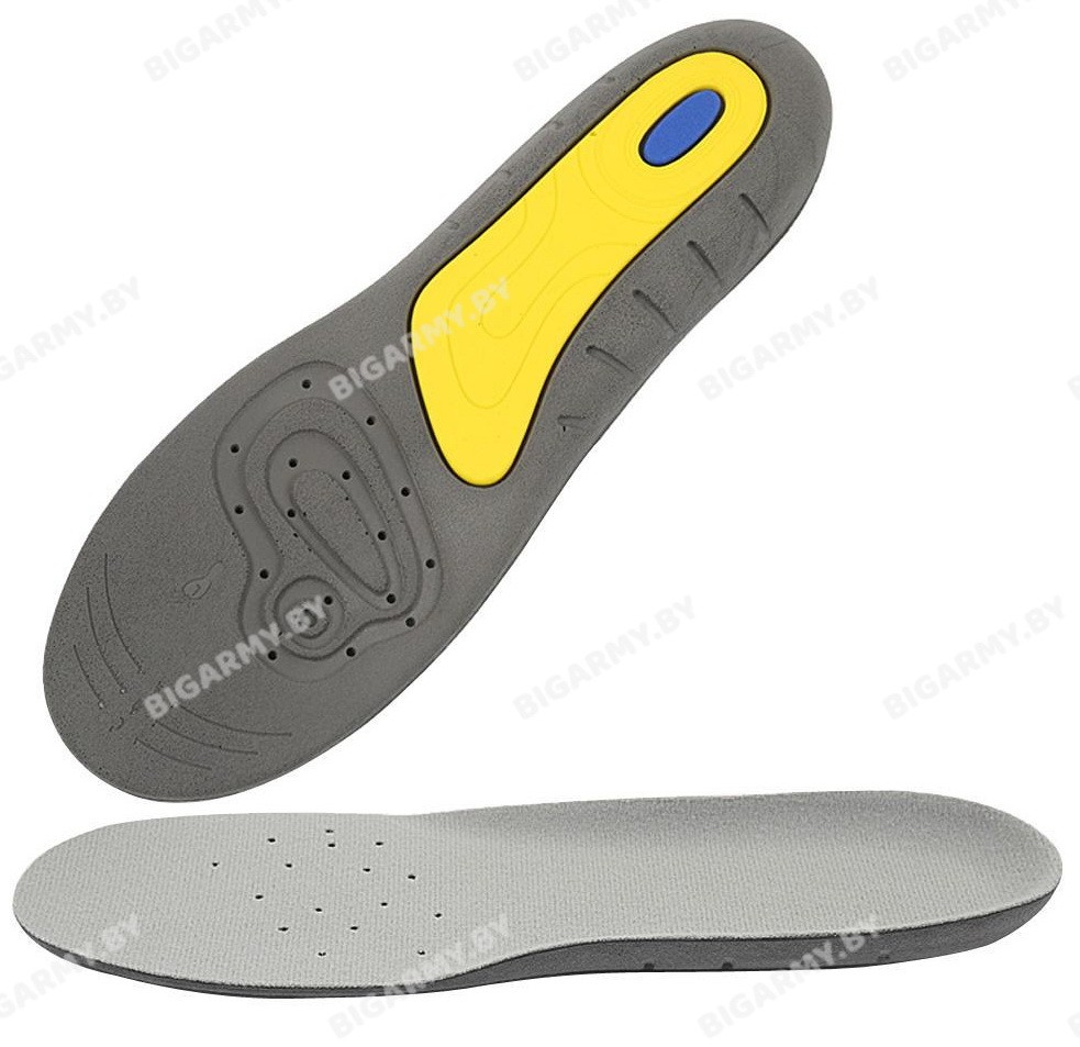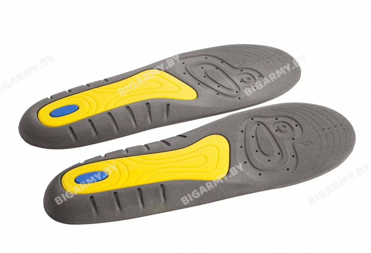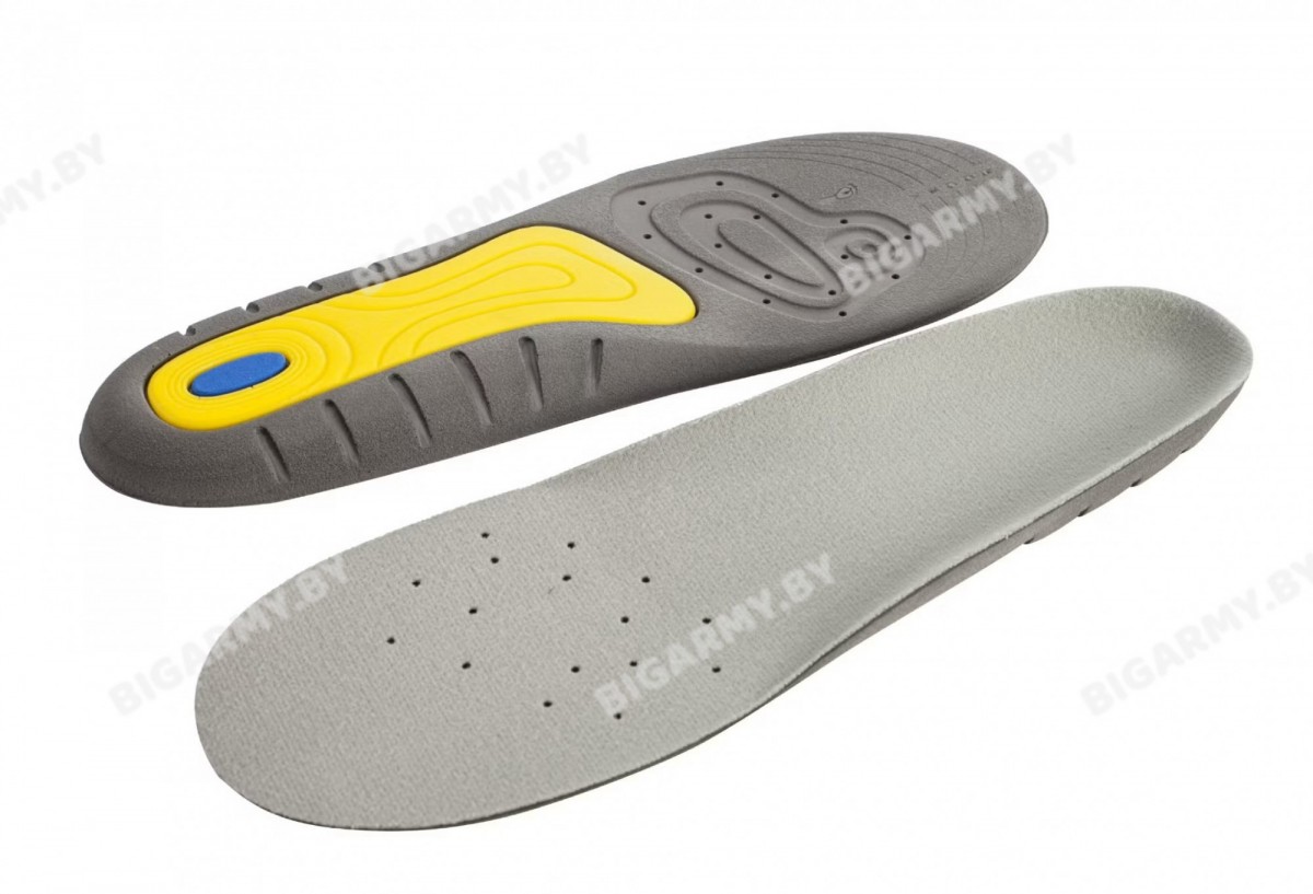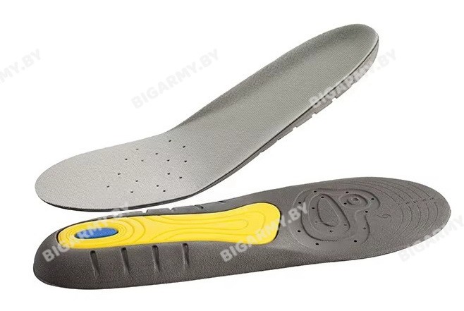 Конструкция стелек обеспечивает различное распределение плотности материала по всей длине стельки, создавая амортизационную подушку под передним отделом стопы. Наличие амортизирующей вставки обеспечивает снижение ударной нагрузки на стопу, повышает комфортность обуви, обеспечивая разгрузку проблемных зон.