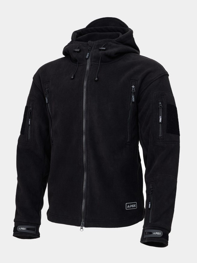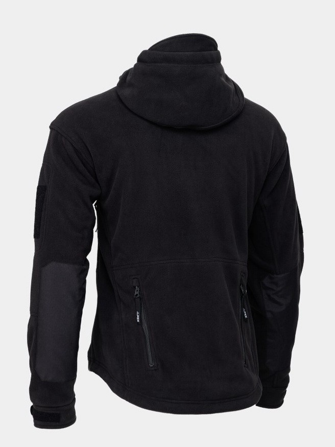 Кофта флисовая черная HUBBARD — это усиленная защита от ветра и холода. Отлично подойдет для использования в экстремальных погодных условиях. Есть регулируемый капюшон с небольшим козырьком, а также набор карманов для тактических целей.