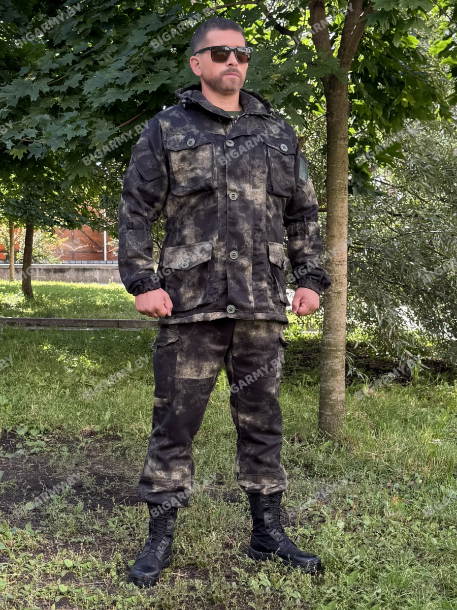 Костюм горка 8 Черный мох пользуется популярностью среди людей ведущих активный образ жизни. Очень практична, удобна и не сковывает движений.