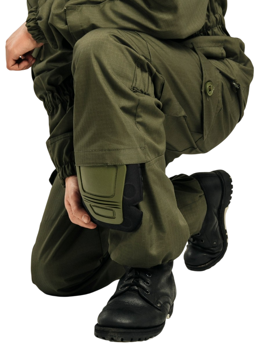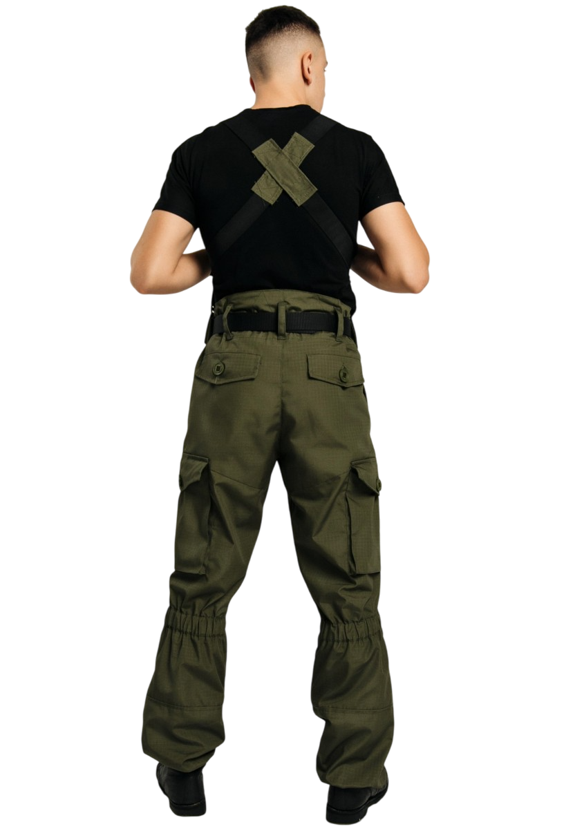 - имеют 8 карманов (2 сквозных, 2 накладных по бокам, 2 накладных сзади, 2 накладных для штык-ножа);