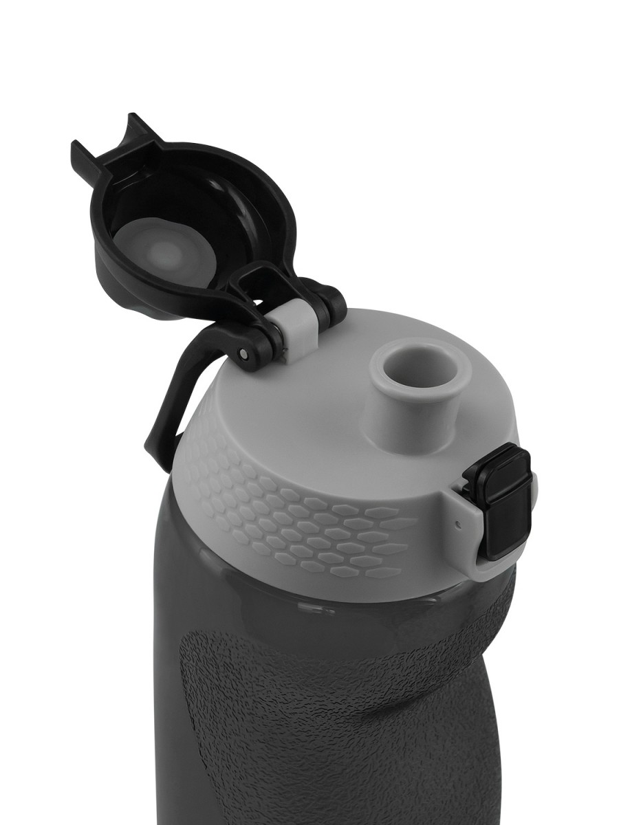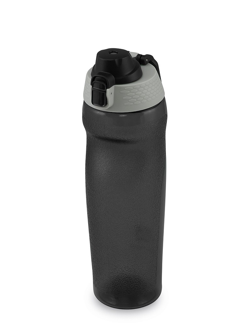 Особая форма и покрытие бутылки обеспечивают надежный захват даже во время спортивных тренировок. Она подходит для большинства держателей на тренажерах, беговых дорожках и велосипедах, а также может быть закреплена карабином. Бутылка из тритана оборудована кнопкой с фиксатором, что предотвращает случайное открытие, но при этом легко открывается одной рукой. Широкий питьевой носик и отверстия для выхода воздуха предотвращают разбрызгивание воды при наклоне бутылки.