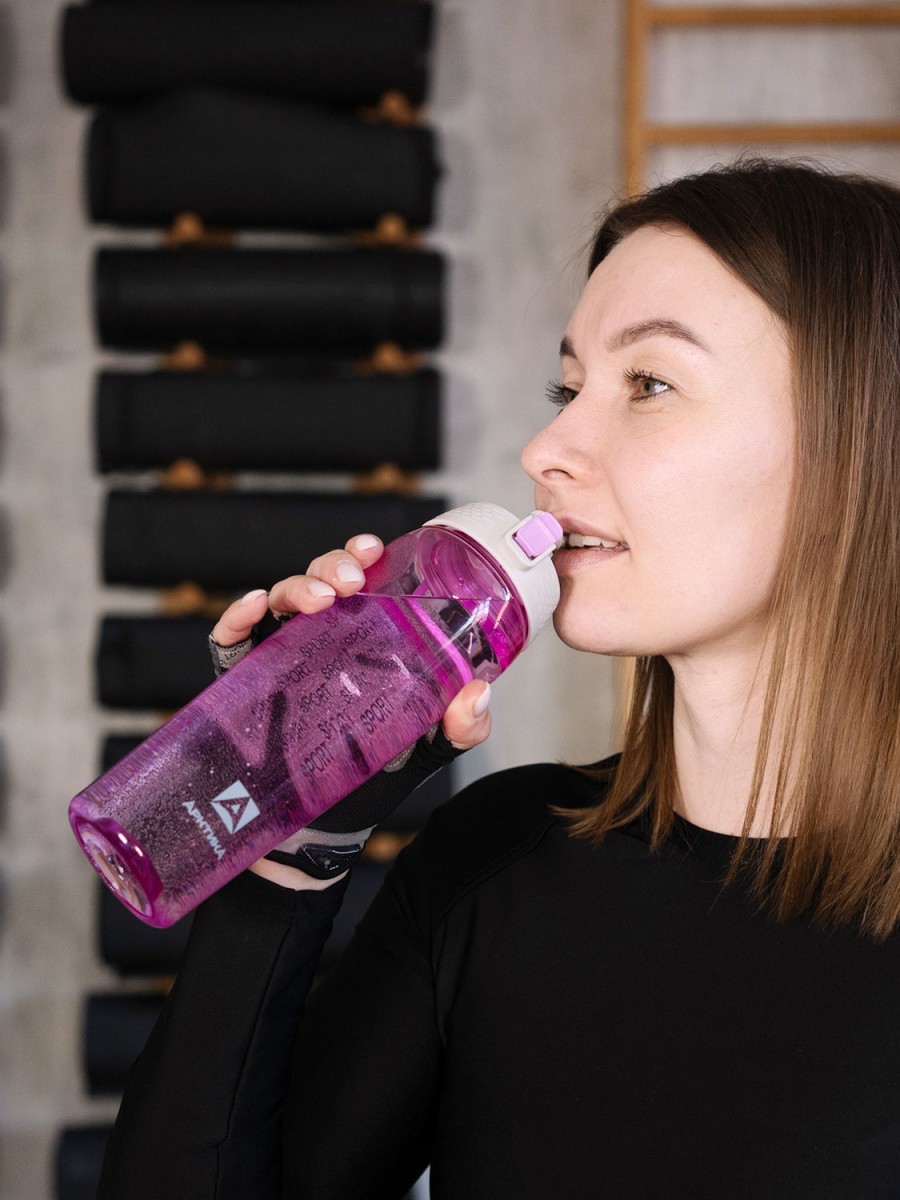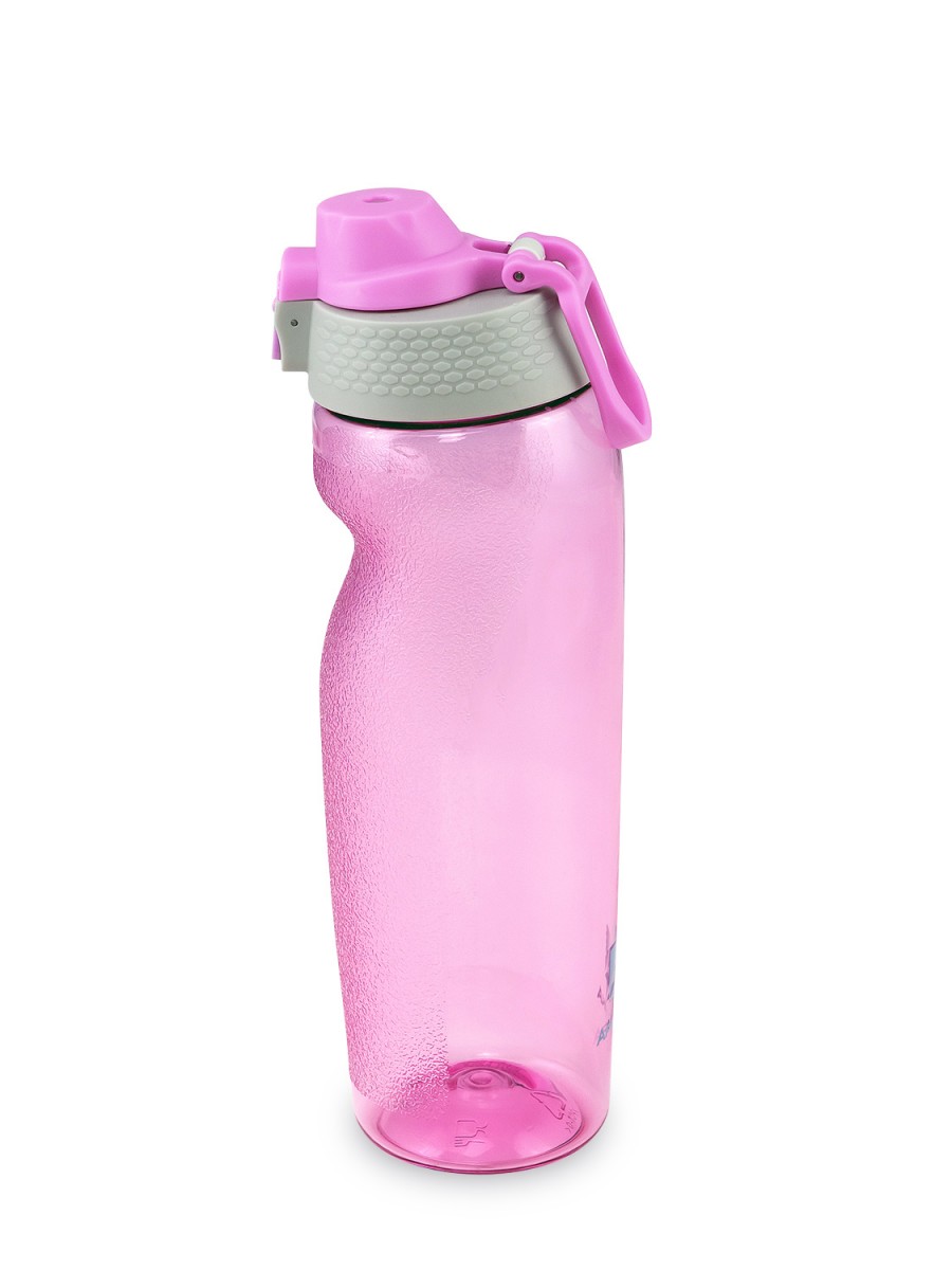 Уникальный дизайн и специальное покрытие предотвращают выскальзывание из влажных рук. Бутылка подходит для большинства подстаканников, а также для использования на тренажерах, беговых дорожках и велосипедах. Её удобно носить за ручку или прикрепить карабином. Механизм открытия с фиксатором исключает случайное раскрытие, и при этом бутылку можно открыть одной рукой. Широкий питьевой носик и вентиляционные отверстия предотвращают расплёскивание воды даже при резком наклоне.
