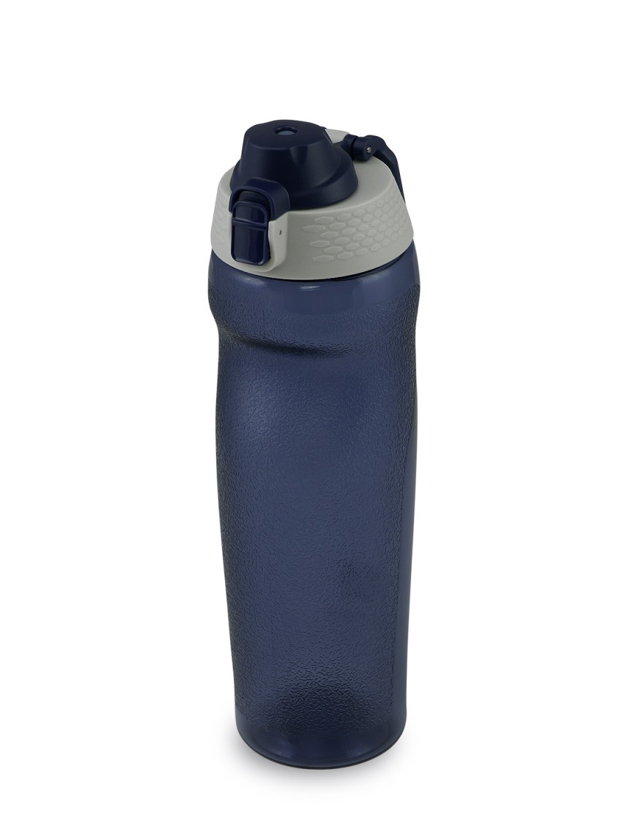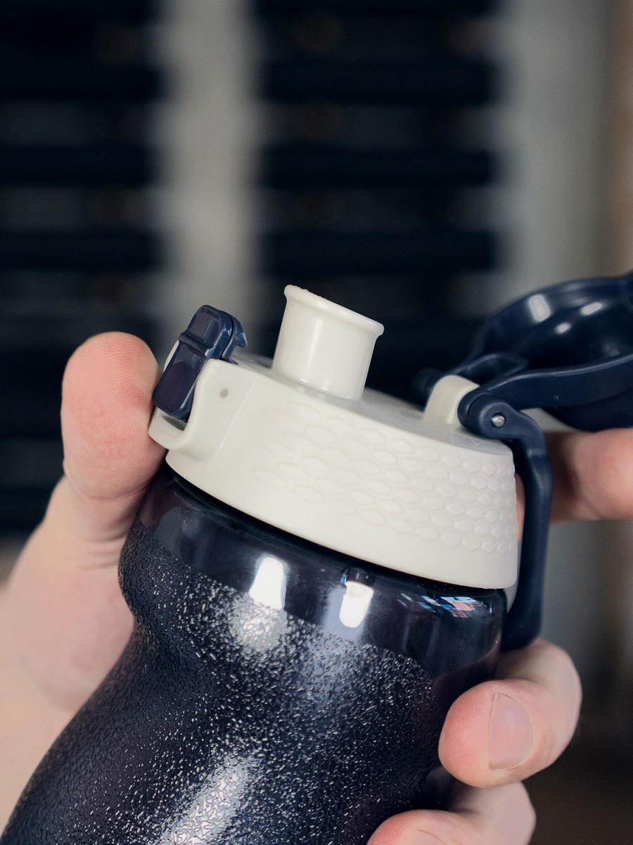 Особая форма и покрытие бутылки обеспечивают надежный захват даже во время спортивных тренировок. Она подходит для большинства держателей на тренажерах, беговых дорожках и велосипедах, а также может быть закреплена карабином. Бутылка из тритана оборудована кнопкой с фиксатором, что предотвращает случайное открытие, но при этом легко открывается одной рукой. Широкий питьевой носик и отверстия для выхода воздуха предотвращают разбрызгивание воды при наклоне бутылки.