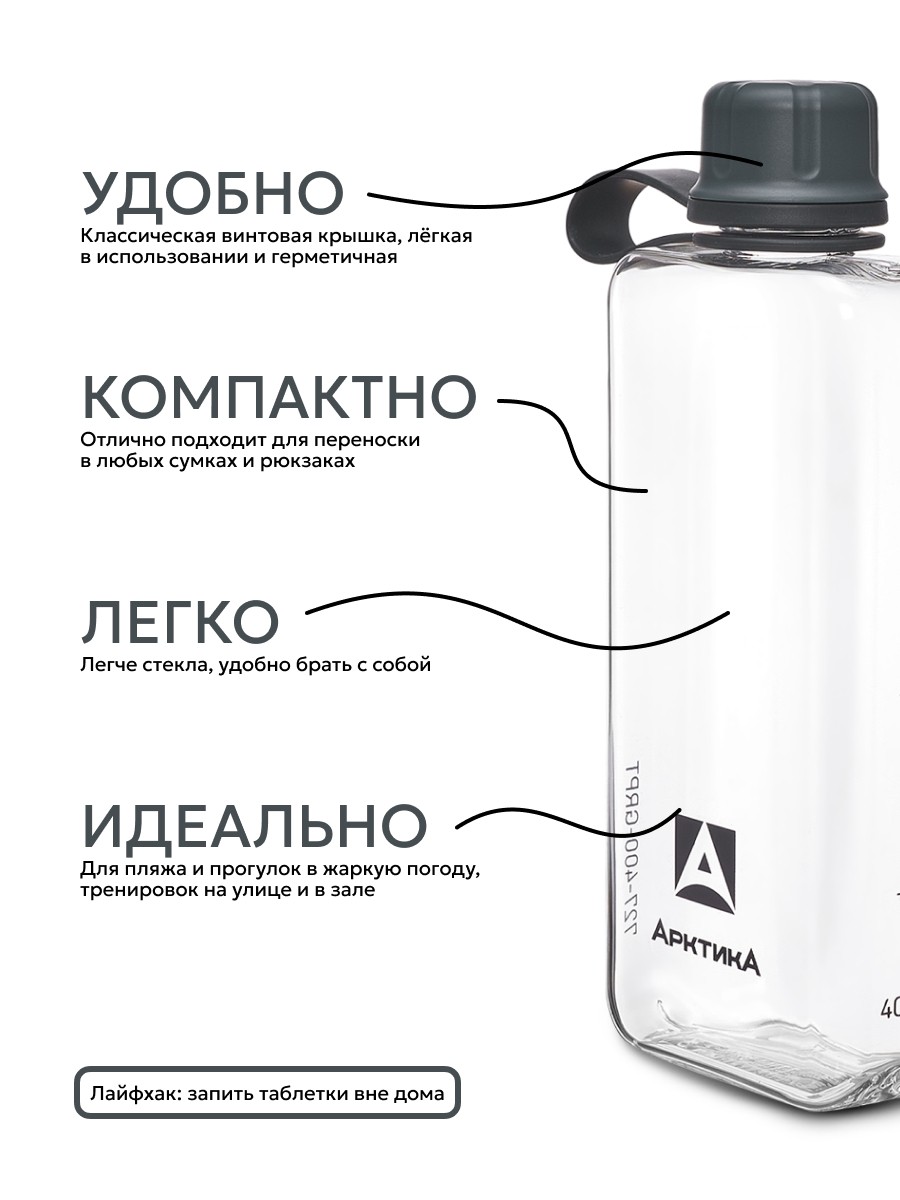 Тритановая бутылка 400 мл Арктика (графит)Тритановая бутылка 400 мл Арктика (графит)