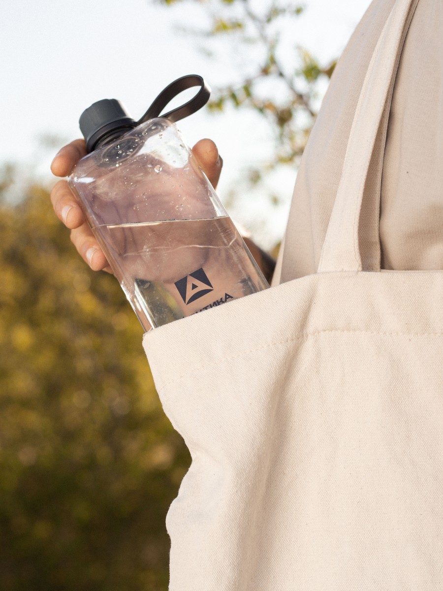 Tritan™ — современная альтернатива обычному пластику и стеклу, который сочетает в себе лучшие их качества. Корпус у бутылки прочный, износостойкий и легкий, как пластик, но прозрачный и безопасный для здоровья, как стекло. Еще она «переживет» падение с высоты человеческого роста, не боится кипятка до 90°С и остаётся прозрачной даже после активного использования.
