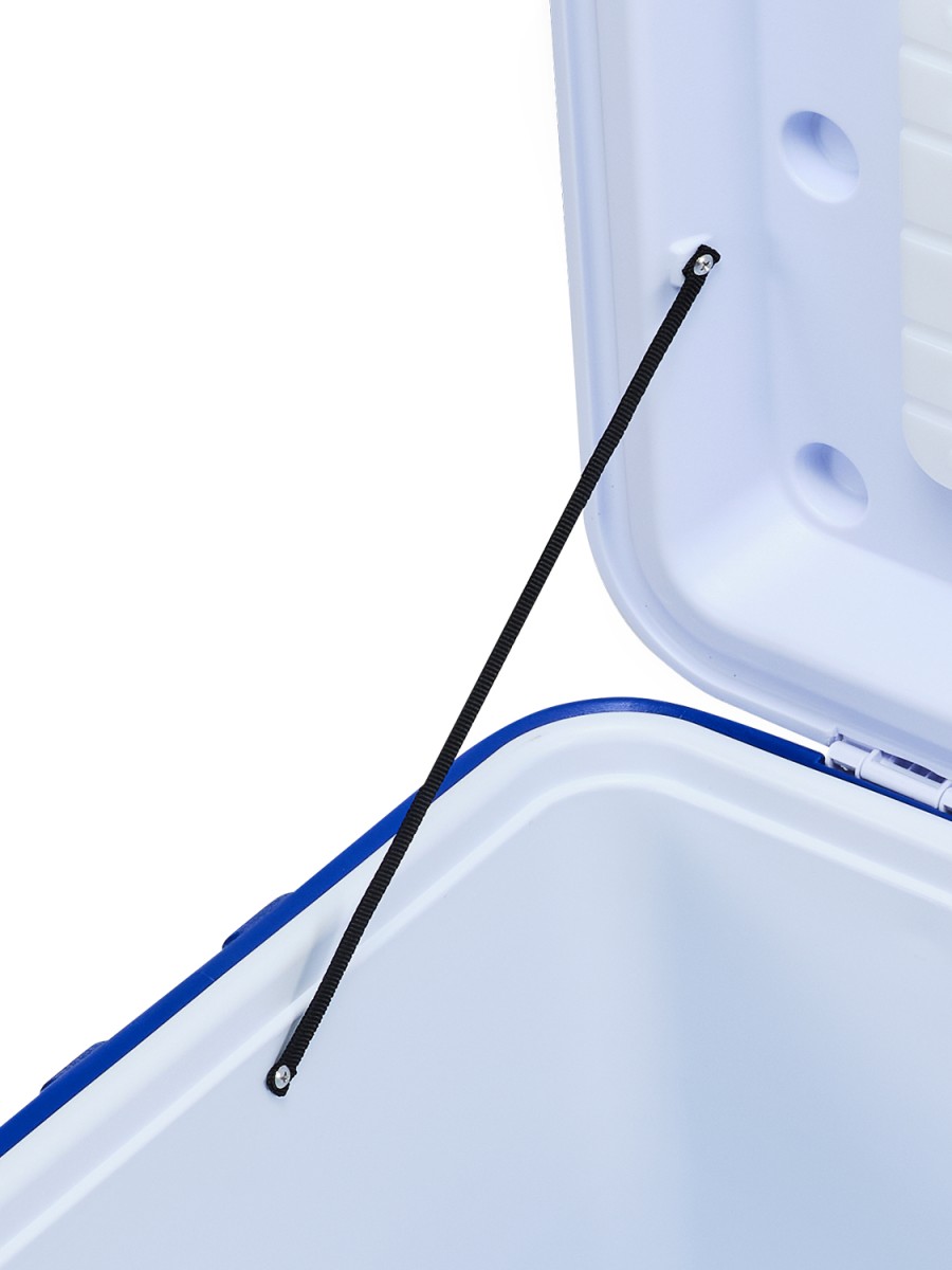 Крышка с замками защитит от случайного открытия, внутри термоконтейнер легко мыть после использования. Контейнер оборудован прочными ручками с двух сторон, крепкими замками, фиксирующим ремнем, который удерживает крышку в открытом состоянии. Встроенный слив решит проблему избытка конденсата.