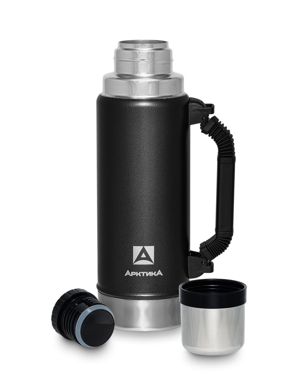 Термос Арктика 106-1250 мл с ручкой черныйТермос Арктика 106-1250 мл с ручкой черный