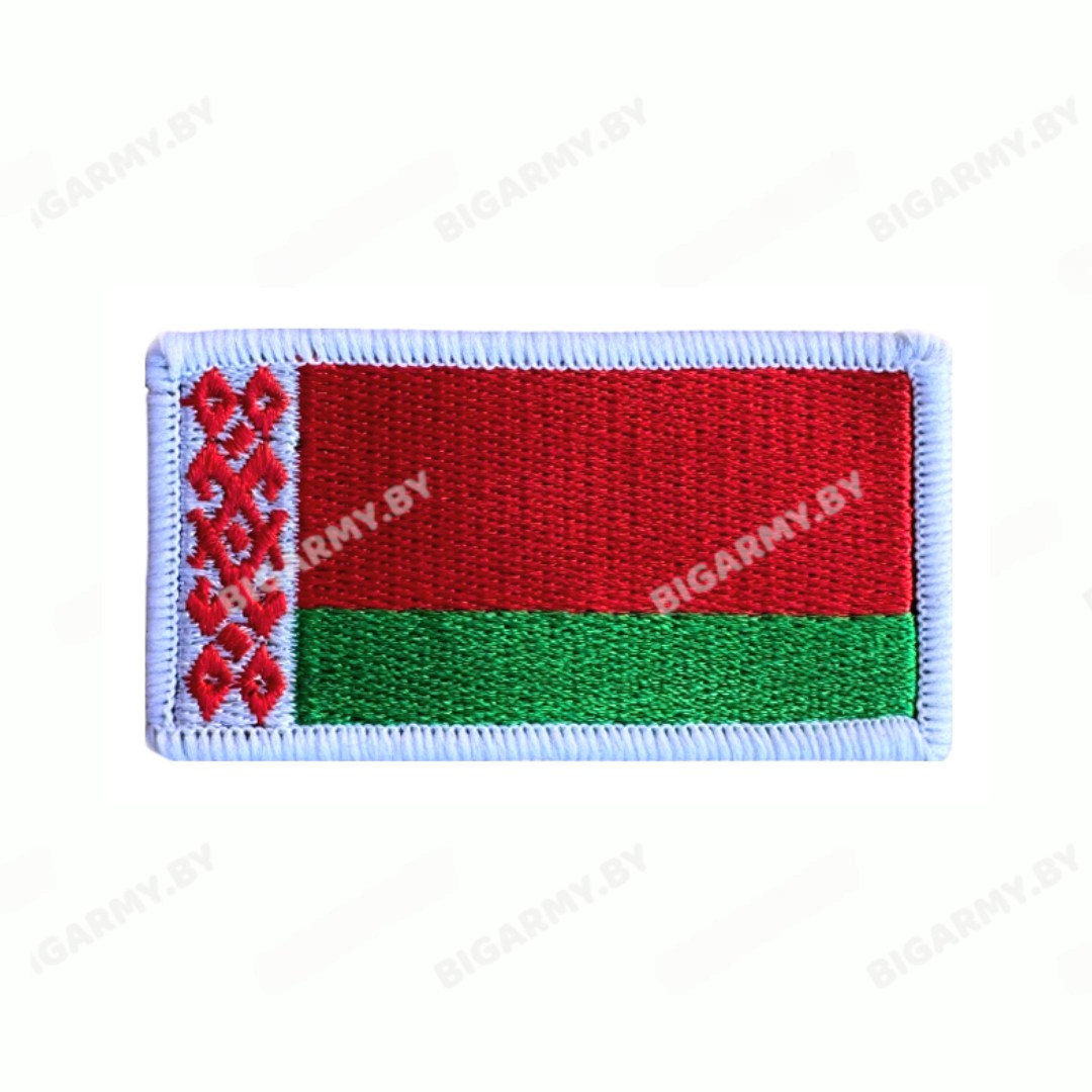 Шеврон Флаг РБ вышитый с белым кантом. Размер шеврона 6 см x 3,5 см.
