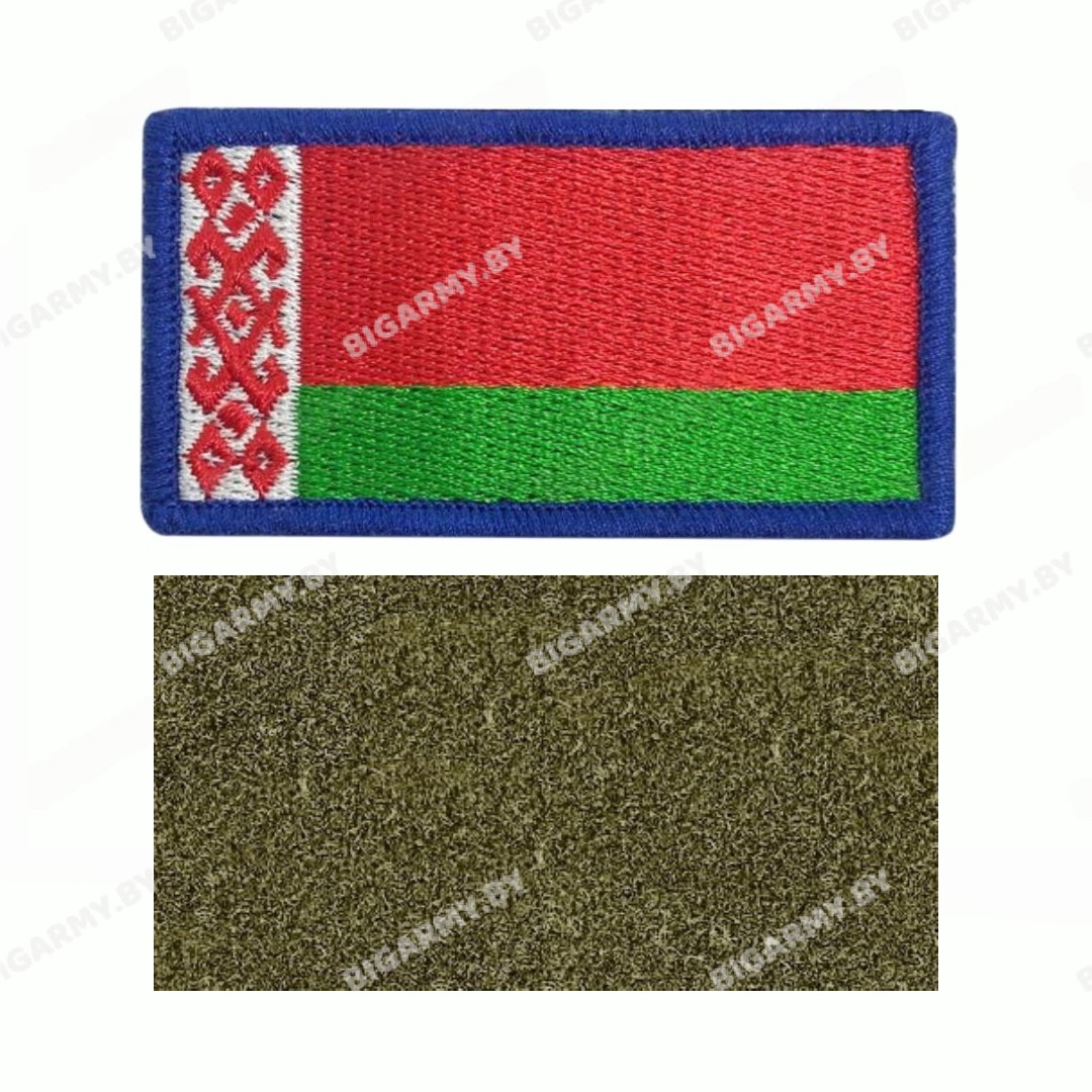 Шеврон Флаг РБ вышитый с синим кантом на липучке.