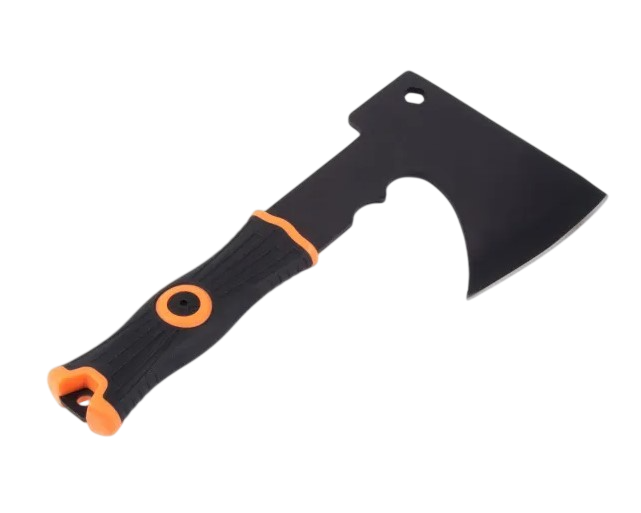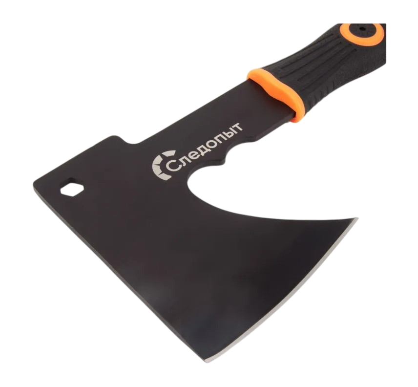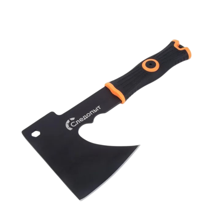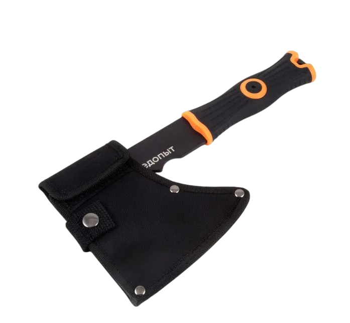 Топор туристический «Следопыт»– универсальный походный топор стильного черного цвета с обрезиненной рукоятью для более удобного захвата рукой. Идеально подходит для рубки сучьев, веток и небольших бревен в походе. В комплекте предусмотрен чехол из кордуры для лезвия.