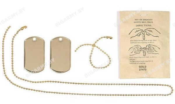 Цепочка для жетонов с 2 жетонами НАТО США в инд. упаковке (зол.)